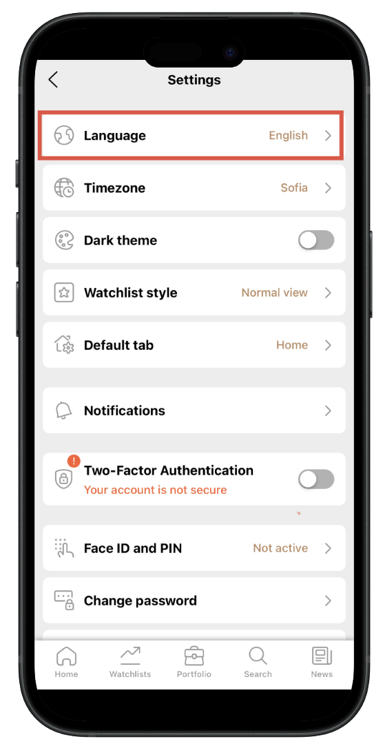 On the mobile app, simply tap on Account (top left corner), go to Settings, and then Language (first option). Tap on the language you want to switch to, and then hit the back button to save.
