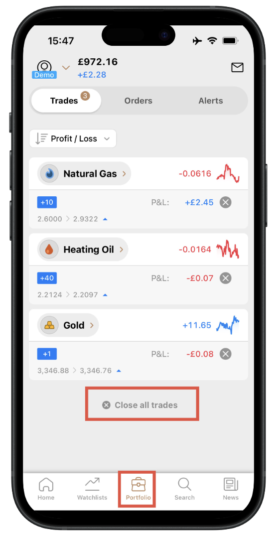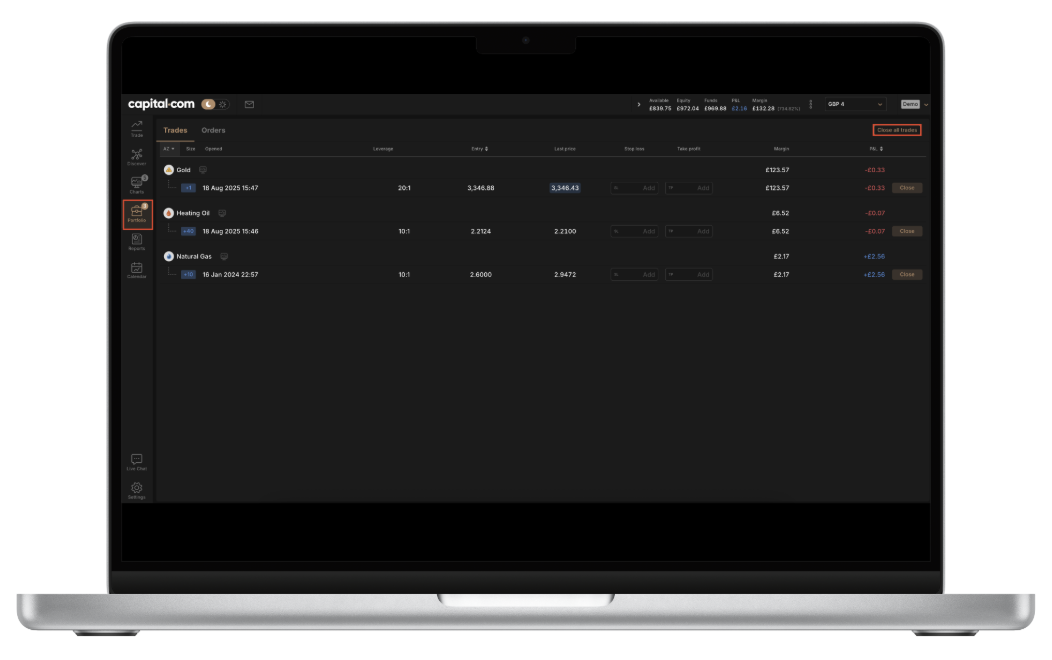 You can close all your open trades in just a few steps. The process is slightly different depending on whether you’re using the app or web platform.
